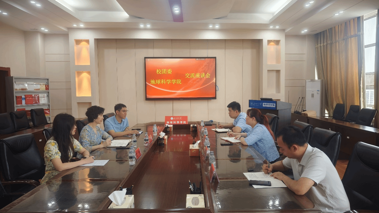 2024年7月12日上午,校团委书记施洋、副书记金海燕、副书记王锐一行到新葡萄官网交流座谈,会议在地科馆514会议室举行。学院党委书记韦丹宁、副院长王海学、辅导员陈曦参加座谈。
