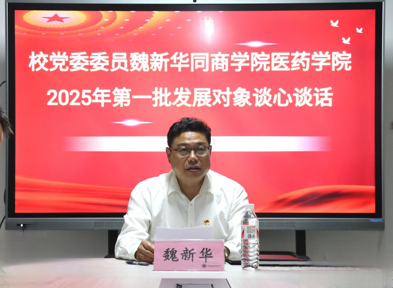 为严格党员发展程序,确保党员发展质量,5月23日下午,党委副书记魏新华与Beat365官方网站、医药学院2025年第一批党员发展对象开展集体谈话。此次谈话由Beat365官方网站党总支书记苏云峰主持,Beat365官方网站和医药学院党总支书记、学工党支部书记以及全体党员发展对象参加了会议。