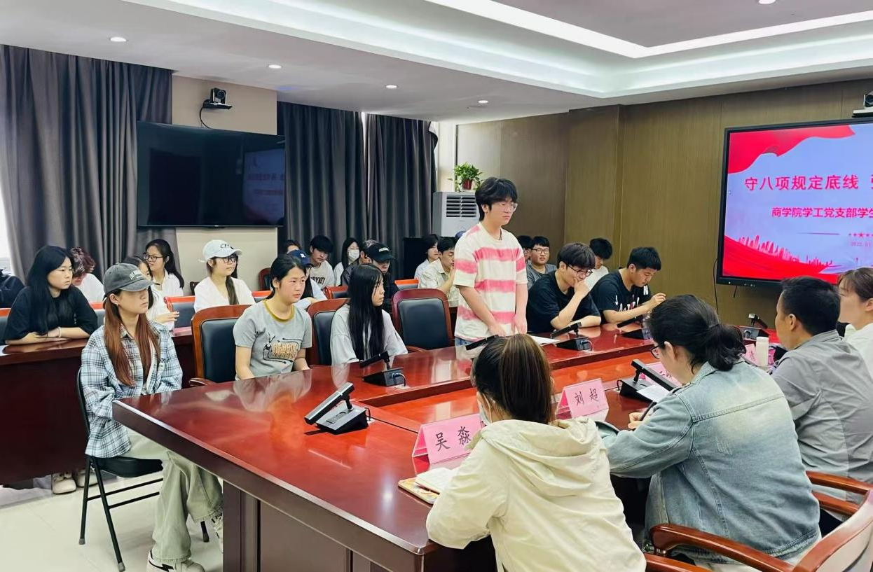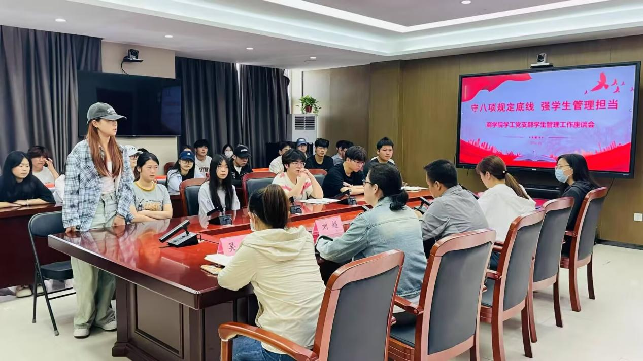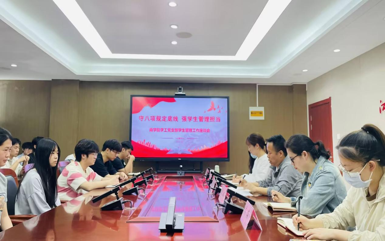 为深入贯彻落实中央八项规定精神,进一步提升学生管理工作水平,4月21日,Beat365官方网站学工党支部组织召开了以“守八项规定底线强学生管理担当”为主题的学生管理工作座谈会,学院党总支书记苏云峰、学工办主任刘超、辅导员代表及学生代表参加,会议由学院党总支副书记王倩主持。
