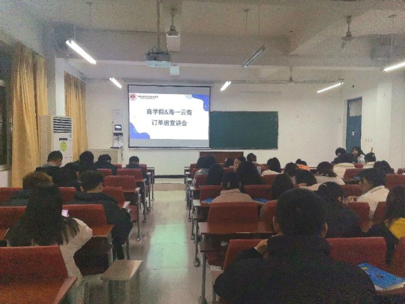 为加强学校与企业的合作,促进学生和企业之间的交流,提升学生技能并加深对行业的了解。Beat365官方网站于11月30日下午,在东校区教学楼102及203开展了海一云商集团订单班线上宣讲会。