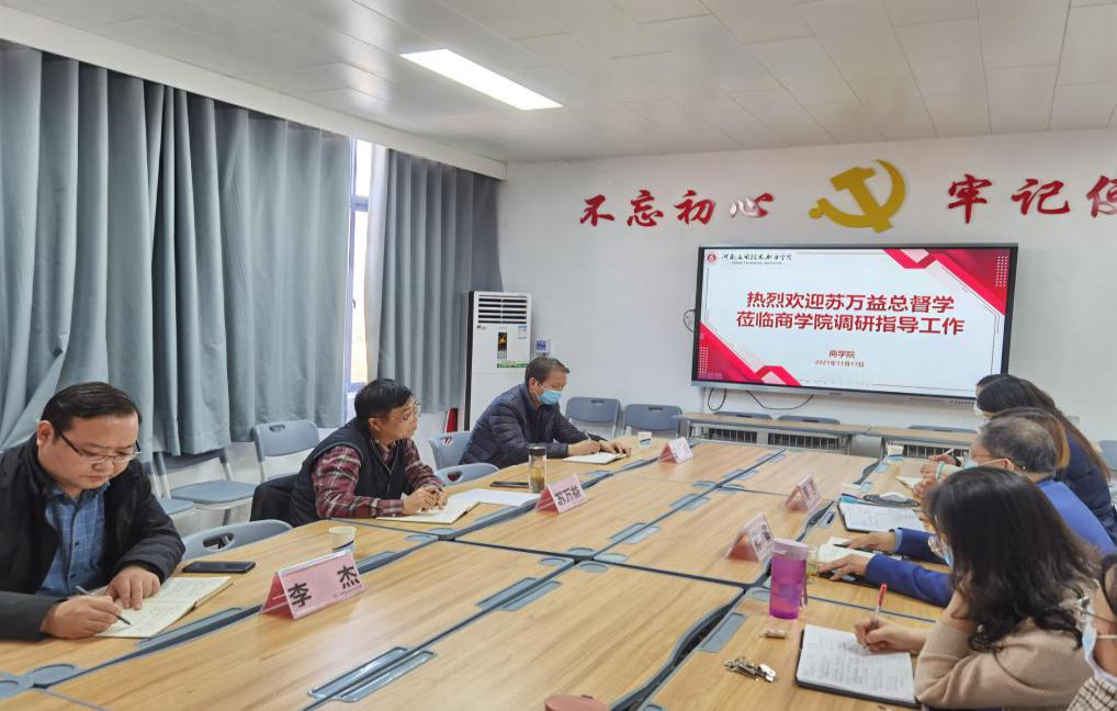11月17日下午,学校总督学苏万益、教务处副处长王勇、发展与质量管理处副处长李杰莅临Beat365官方网站调研指导工作。调研会议办公楼504活动室进行。院长孙勇、党总支书记周燕及部分骨干教师参加了调研座谈会。