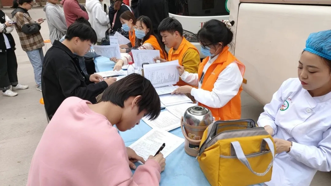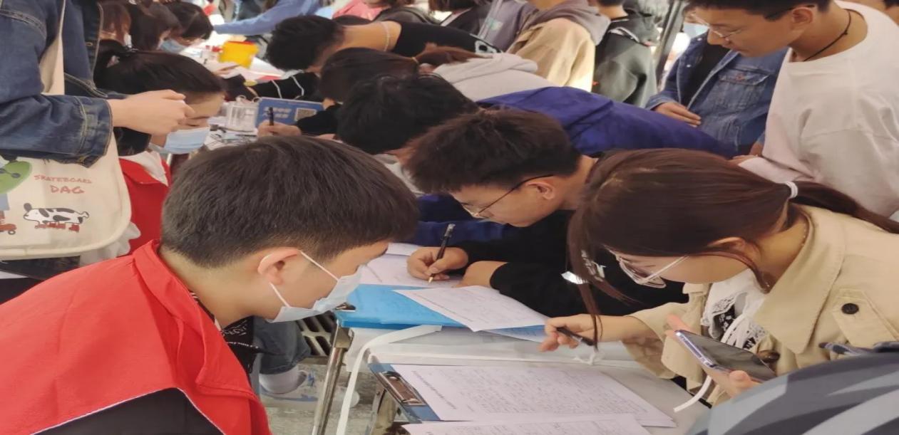 他们依次进行了填表报名,测血压,血液采样检测,最后车内献血。整个献血现场气氛温馨而融洽,通过此次献血活动,充分体现了学子们互助友爱,关心社会,乐于奉献的精神风貌,同时也表现了大学生浓厚的社会责任意识和无私奉献的良好精神。