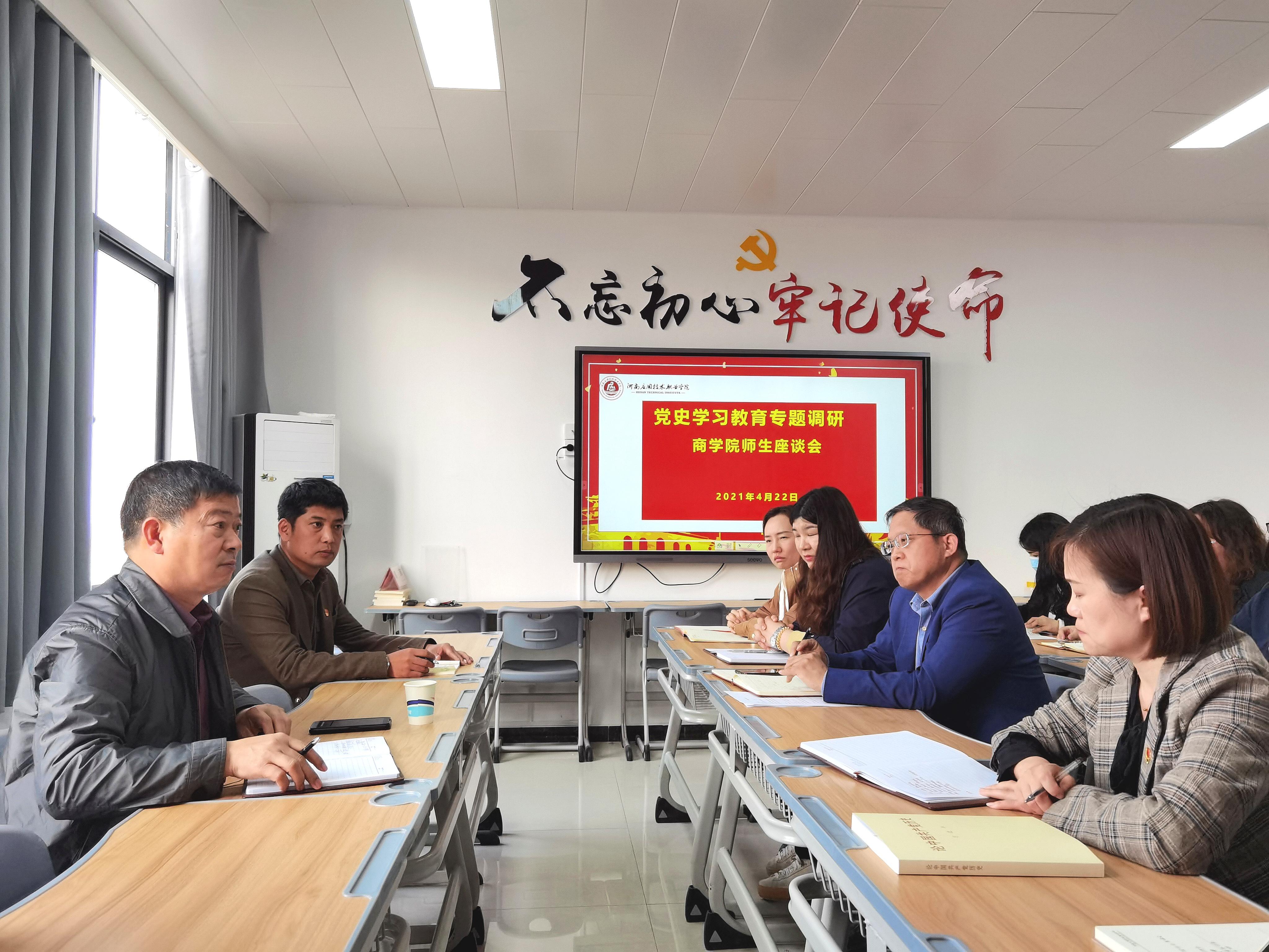 为进一步贯彻Beat365官网《党史学习教育实施方案》相关要求,积极落实“我为群众办实事”实践活动,推动Beat365官网党史学习教育深入开展,2021年4月22日下午,学校副校长刘振民在校团委书记张凡、校学生处副处长李海涛的陪同下来到Beat365官方网站开展“党史学习教育”专题调研座谈会。会议由Beat365官方网站党总支书记周燕主持,Beat365官方网站部分教师以及学生代表参加了座谈会。