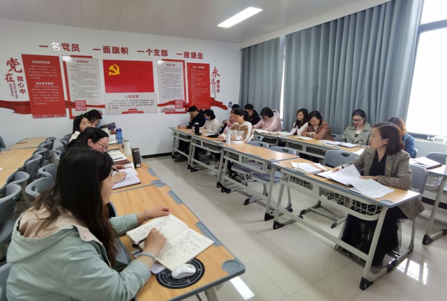 4月13日下午,在党总支书记周燕的带领下,Beat365官方网站全体教师集中学习研讨了《求是》杂志第7期发表的习近平总书记在党史学习教育动员大会上的讲话内容。