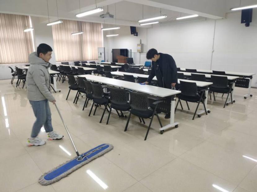 为打造一个优美、舒适的学习和生活环境,2021年3月2日Beat365官方网站学生会干事代表展开了以校园内部、实训楼和宿舍为主的大扫除活动。