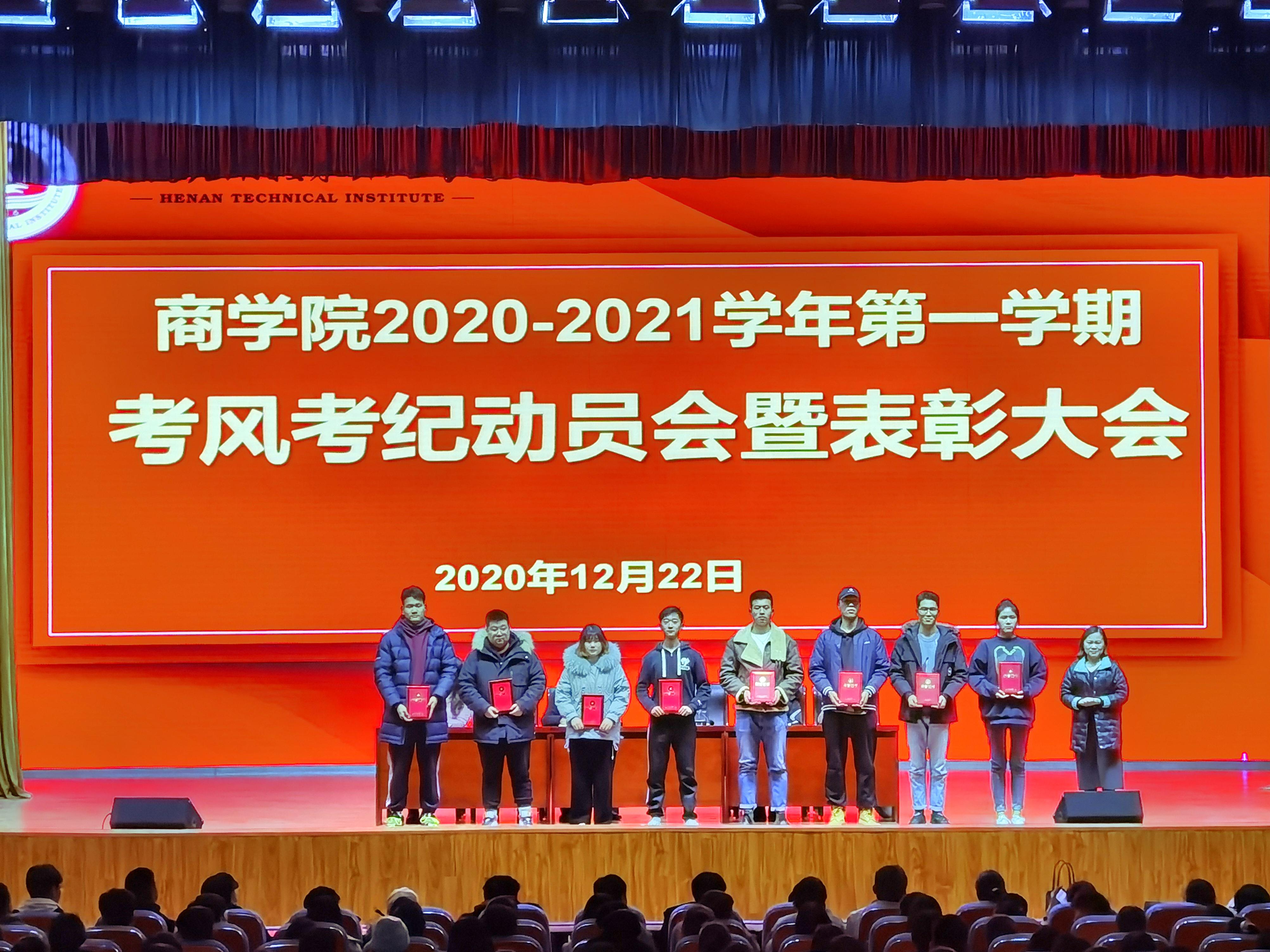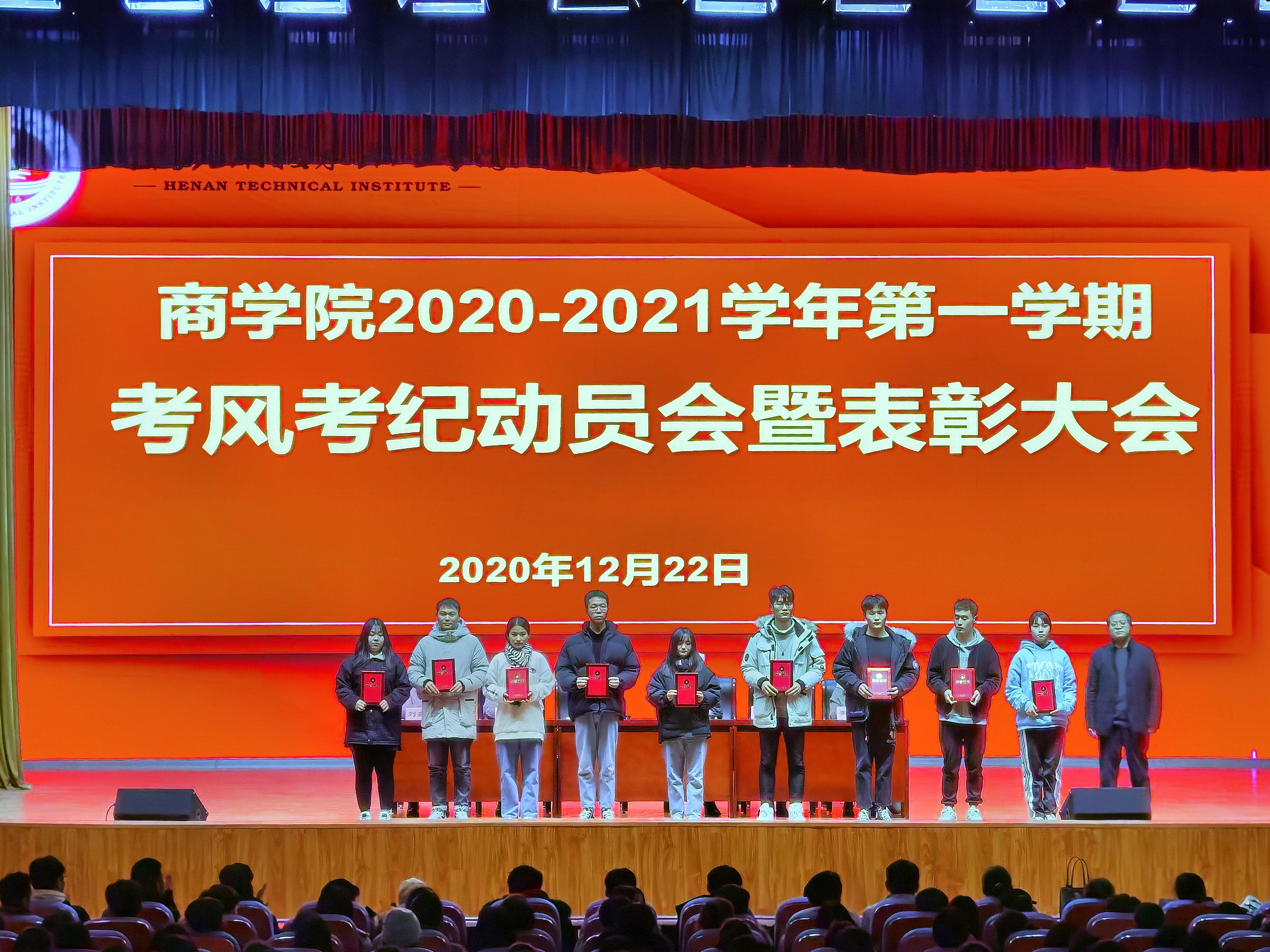 大会首先由教学办主任王珂宣读本学期各类技能竞赛表彰名单;学工办主任刘超宣读国家奖学金、国家励志奖学金、校级奖学金以及评优评先获奖学生名单;团总支书记李力宣读各类活动中先进学生名单。学院领导孙勇、周燕分别为获得表彰的学生代表进行了颁奖。