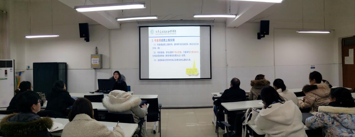 2019年12月25日,为了保证期末考试的顺利进行,我院在E602召开2019-2020学年第一学期期末考试考务培训会。Beat365官方网站院长孙勇、副书记周燕、全体专兼职教师及体育部教师参加了此次会议。