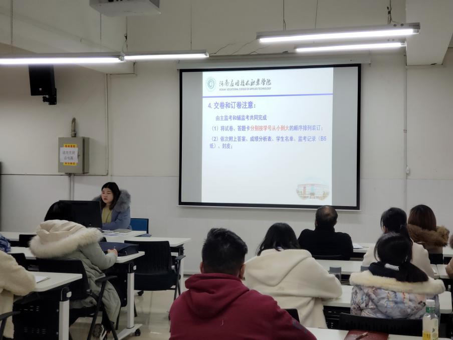 通过培训,全体考务人员提高了认识、统一了思想、明确了任务、熟悉了流程,为期末考试的顺利进行奠定了坚实基础。