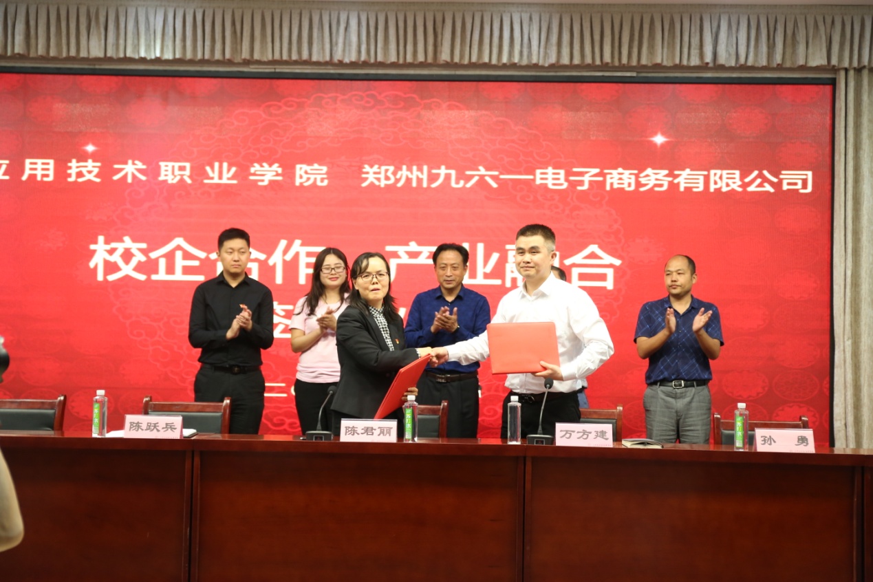 2019年5月14下午,Beat365官网与郑州九六一集团校企合作签约暨颁奖仪式在实训中心二楼会议室隆重举行。副校长陈君丽,郑州九六一集团总经理万方建、行政总监李伟,Beat365官方网站孙勇院长及相关部门负责人出席签约暨颁奖仪式。招生就业处副处长李向民主持会议。Beat365官方网站2017级全体学生参加了本次会议。