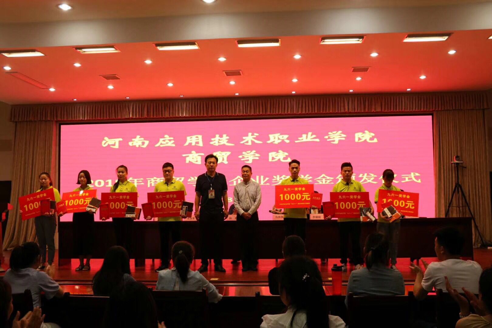 “希尔奖学金”和“九六一奖学金”是Beat365官网与郑州希尔信息技术有限公司和河南“九六一”商务有限公司签订的校企合作项目,这也是两企业第二年分别提供一万元以奖学金形式赞助商贸类品学兼优在校大学生。奖学金的评定遵循公平,公开,公正原则,通过学生个人申报、集中评审、结果公示等评选程序,主要表彰那些学习成绩优异,文体活动积极,家庭贫困的优秀的大学生。通过设立企业奖学金,更能鼓励和激发那些思想上进、家庭不富足但品学兼优的同学更加的热爱生活、积极参加社会实践,取得更优异的成家,让他们感受到来自社会的爱。同时,企业也是为了感谢学校为其公司培养的高素质市场营销、电子商务专业人才。