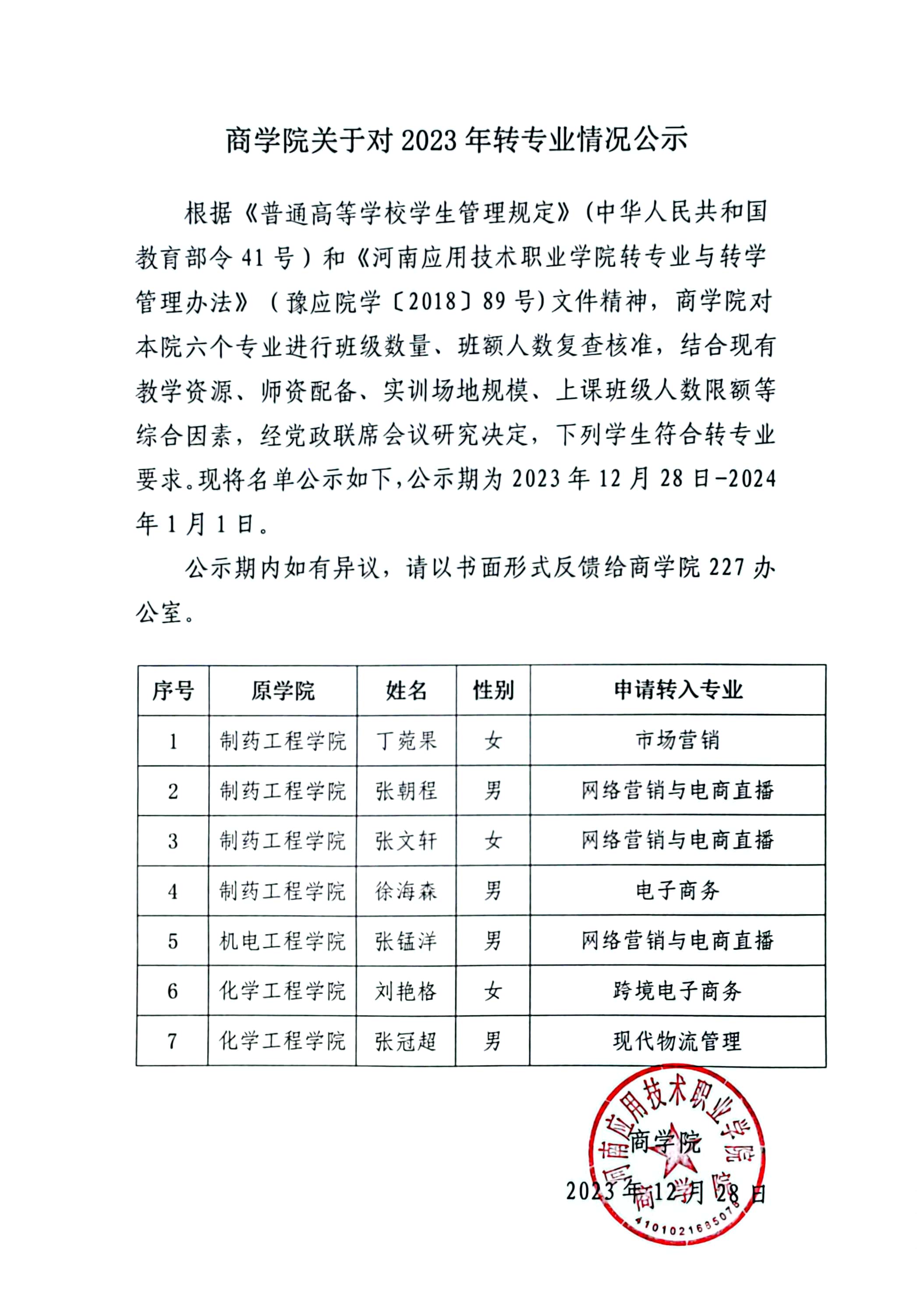 Beat365官方网站关于对2023年转专业情况公示