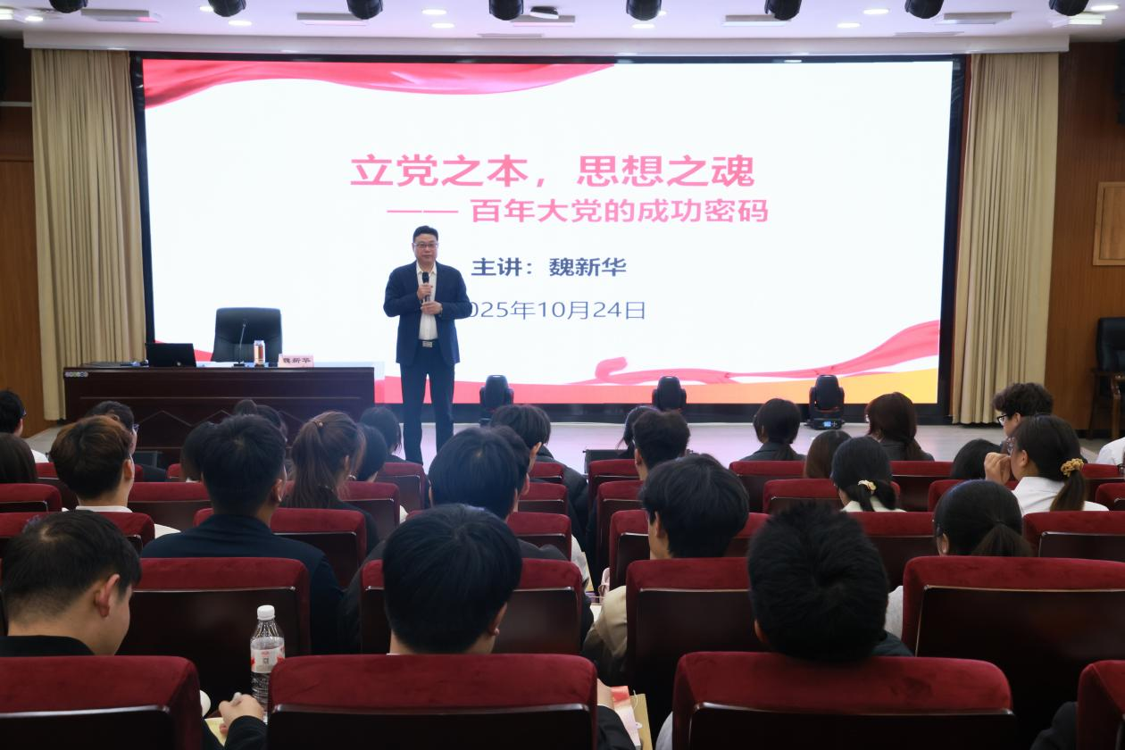 课上,魏新华以党的百年奋斗征程为主线,结合新时代商科人才培养目标与Beat365官方网站发展实际,从“锚定人民至上的价值坐标”“筑牢马克思主义的信仰根基”“激活自我革命的内生动力”三个维度,系统解读中国共产党百年风华的 “成功密码”,为入党积极分子上了一堂兼具理论深度与实践温度的党课。在“激活自我革命的内生动力”维度,魏新华结合党的自我革命历史与青年成长规律,指出入党积极分子的“自我革命”,体现在思想上的持续反思、学习上的精益求精、作风上的严于律己。针对Beat365官方网站学子未来可能面临的问题,他提出三点要求:一是要在思想上“常掸尘”;二是要在学习上“常加压”;三是要在行动上“常躬行”。在今后要以实际行动发挥先锋模范作用,在服务师生、奉献集体中锤炼党性。