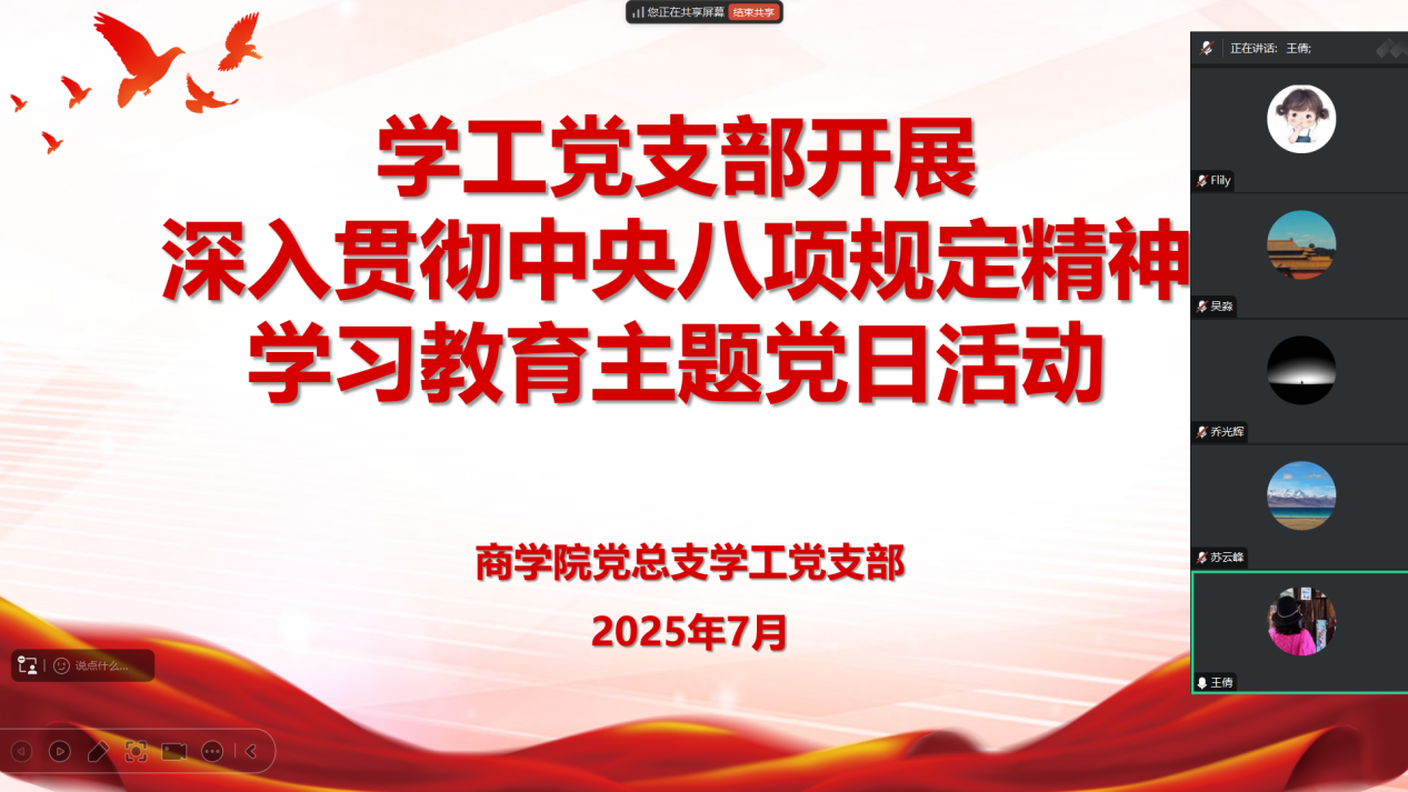 为推进中央八项规定精神学习教育走深走实,7月16日,Beat365官方网站党总支学工党支部组织开展关于中央八项规定精神学习教育研讨交流主题党日活动,本次党日活动旨在深化认识中央八项规定精神学习教育“回头看”工作,强调深化问题整改与责任落实,会议由Beat365官方网站党总支书记苏云峰及学工支部全体党员教师参加,学工党支部书记王倩主持。