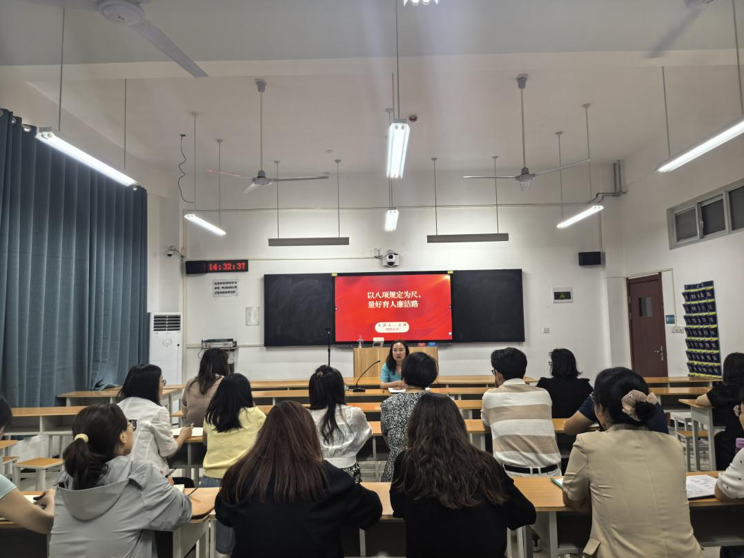 为深入贯彻中央八项规定精神,进一步强化Beat365官方网站教工党员的廉洁自律意识,推动形成风清气正的育人环境,6月10日,Beat365官方网站教工党支部书记王珂在开封北院E103为全体教师讲授“以中央八项规定为尺,量好育人廉洁路”为主题的党课。