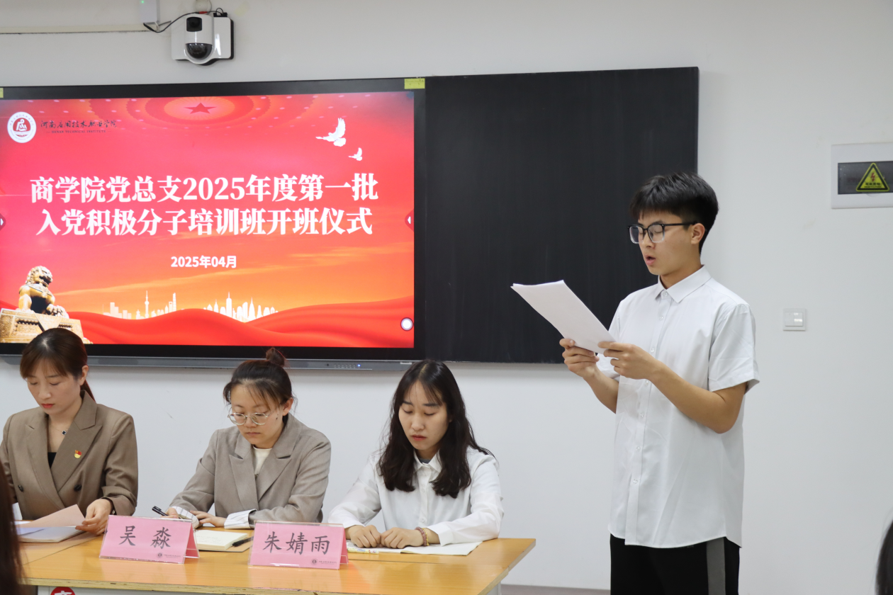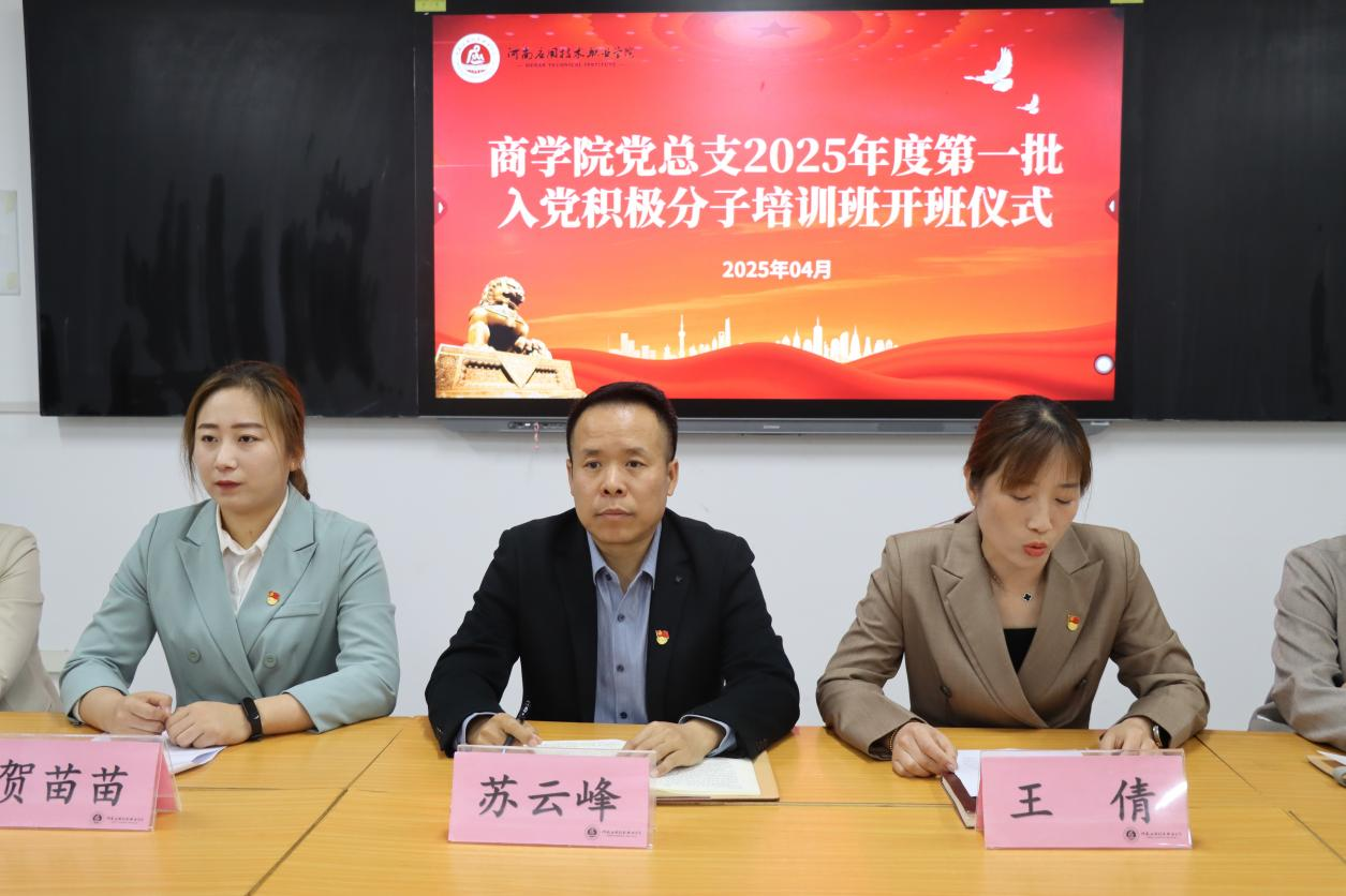 为深入学习贯彻党的二十大和党的二十届三中全会精神,加强入党积极分子的培养教育,提高学员思想政治素质。Beat365官方网站于4月7日在教学楼E103举行2025年第一批入党积极分子培训班开班仪式。Beat365官方网站党总支书记苏云峰、学工支部书记王倩及学院相关教师出席本次会议,会议由Beat365官方网站党总支组织委员贺苗苗主持。