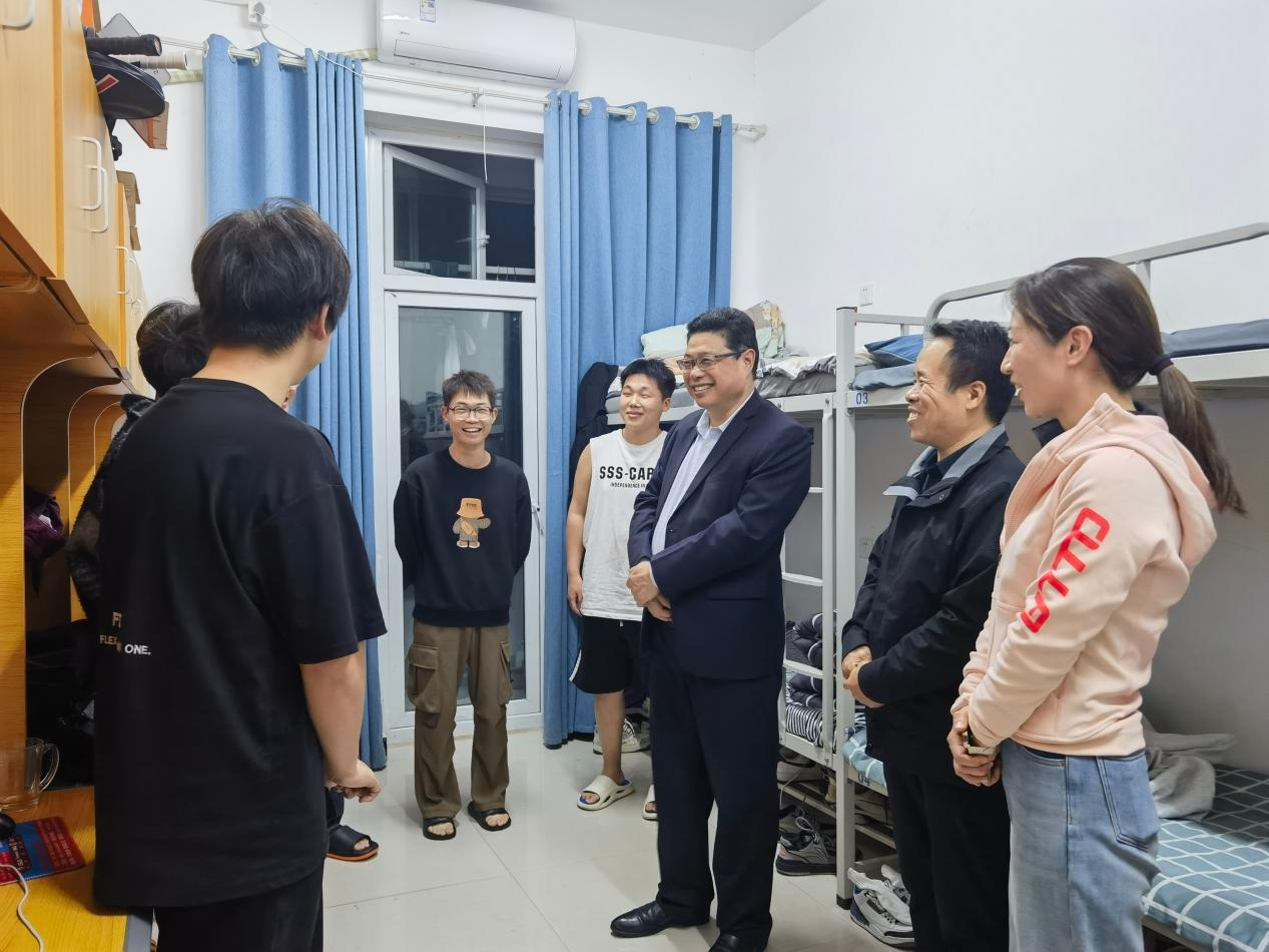 魏新华来到学生宿舍,与同学们进行面对面的亲切交流。他详细询问了同学们的学习生活情况,特别关注了大家在校的学习状态和身心健康。魏新华表示,学校一直把学生的成长成才放在首位,希望同学们能够充分利用学校提供的资源和平台,努力学习,提升自我。