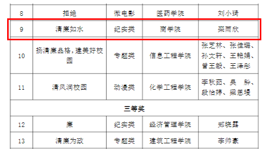近日,学校纪律检查委员会下发了《Beat365官方网站“清廉学校”微视频征集活动》的通知,经过专家评审、网络投票等环节,最终我院师生拍摄的清廉作品获教师组一等奖专题类1项,学生组二等奖专题类1项,纪实类1项。