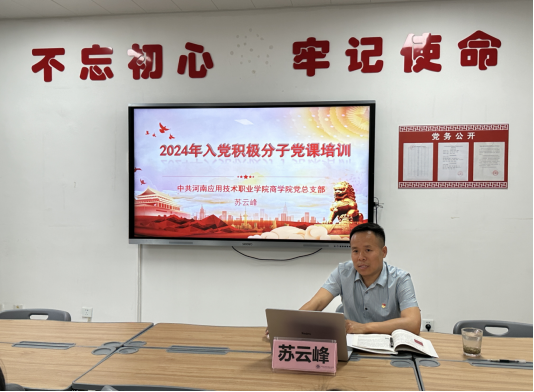 为更好的贯彻落实Beat365官方网站党员发展培训工作,根据Beat365官方网站党总支总体部署和安排,4月25日晚,Beat365官方网站在郑州校区办公楼A212开展2024年入党积极分子党课培训,本次党课培训由Beat365官方网站党总支书记苏云峰进行讲解。