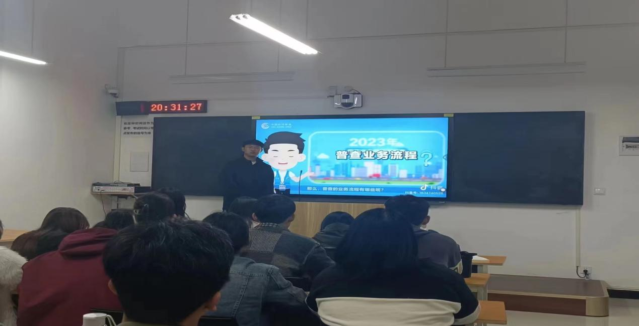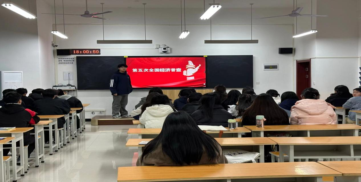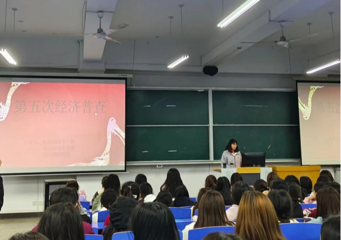 各班级团支部书记通过团课PPT和视频等形式,生动形象地为班级同学讲述第五次全国经济普查的相关内容,通过此次主题团课的开展,同学们更加了解经济普查存在的意义,提高了同学们对经济普查的认识和重视程度,为全国经济普查工作的顺利开展营造良好的氛围。