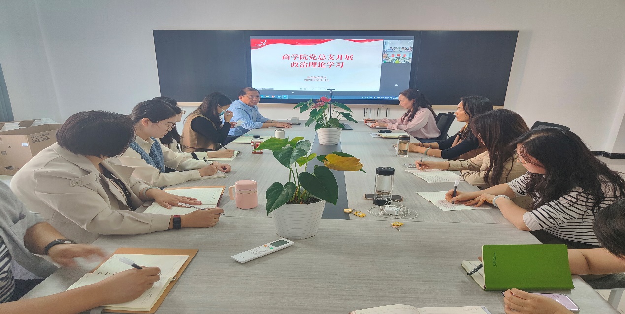 2023年10月31日下午,Beat365官方网站党总支组织全体教师开展政治理论学习,本次学习以线上、线下相结合的方式进行,郑汴两校区同时开展,由Beat365官方网站党总支书记苏云峰主持,宣传委员刘嘉慧进行领学。