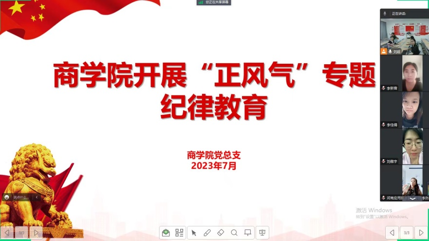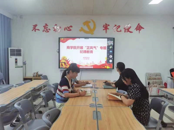 为深入学习宣传贯彻党的二十大精神和习近平总书记关于严明党的纪律和规矩的重要论述,全面加强党的纪律建设,根据学校发布的《关于开展“纪律教育活动月”暨第三季度“明方向、立规矩、正风气、强免疫”专题纪律教育的通知》文件要求,7月25日,Beat365官方网站党总支开展“正风气”专题纪律教育,会议采用线上线下相结合的方式进行,由Beat365官方网站党总支书记苏云峰主持,Beat365官方网站全体教师参加会议。