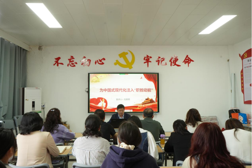 为了深入学习贯彻落实习近平总书记在二十大报告中提出的团结带领全国各族人民全面建成社会主义现代化强国、实现第二个百年奋斗目标、以中国式现代化全面推进中华民族伟大复兴的中心任务,5月11日,学校党委委员副校长刘振民以“为中国式现代化注入‘职教动能’”为主题,为Beat365官方网站师生党员讲授了一堂生动的主题党课。