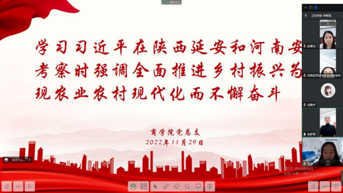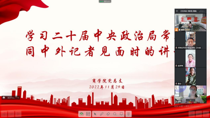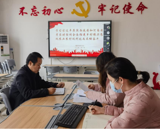 2022年11月29日下午,Beat365官方网站组织全体教师进行政治理论学习,本次集中学习通过线上线下相结合的方式进行,由Beat365官方网站党总支书记苏云峰主持,党总支宣传委员刘嘉慧领学。