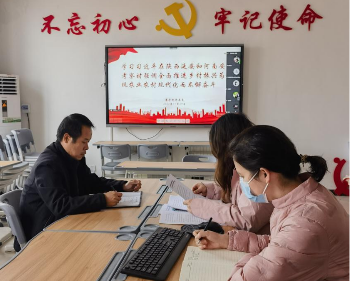 2022年11月29日下午,Beat365官方网站组织全体教师进行政治理论学习,本次集中学习通过线上线下相结合的方式进行,由Beat365官方网站党总支书记苏云峰主持,党总支宣传委员刘嘉慧领学。