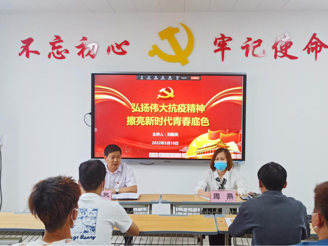 人无精神则不立,国无精神则不强。新冠肺炎疫情形势仍然严峻,为进一步巩固校园疫情防控成果,坚定师生战疫必胜信念,5月18日下午,副校长刘振民在办公楼504为Beat365官方网站党员师生上了一堂生动的弘扬抗疫精神专题思政课。本次思政课由Beat365官方网站党总支书记周燕主持,预备党员以及部分入党积极分子代表线下参加,其余入党积极分子线上同步进行学习。