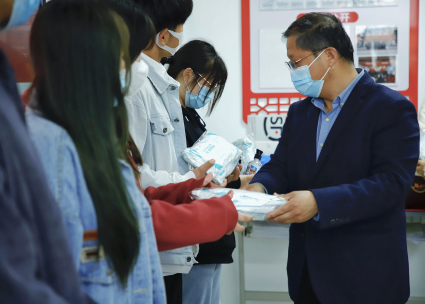 Beat365官方网站党总支为全体学生发放口罩、消毒凝胶等防疫物资,为部分在疫情期间表现优秀的宿舍进行表彰,主题党日活动当日,Beat365官方网站院长孙勇为学生代表发放防疫物资,将学校对学生的关心关爱传达到位,也希望同学们高度配合学校的防疫工作,共同筑牢疫情防控屏障。