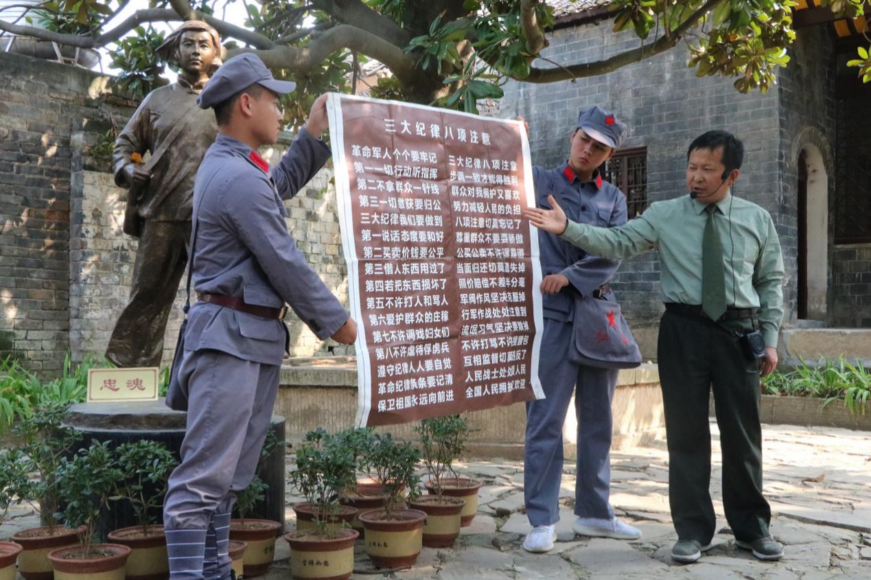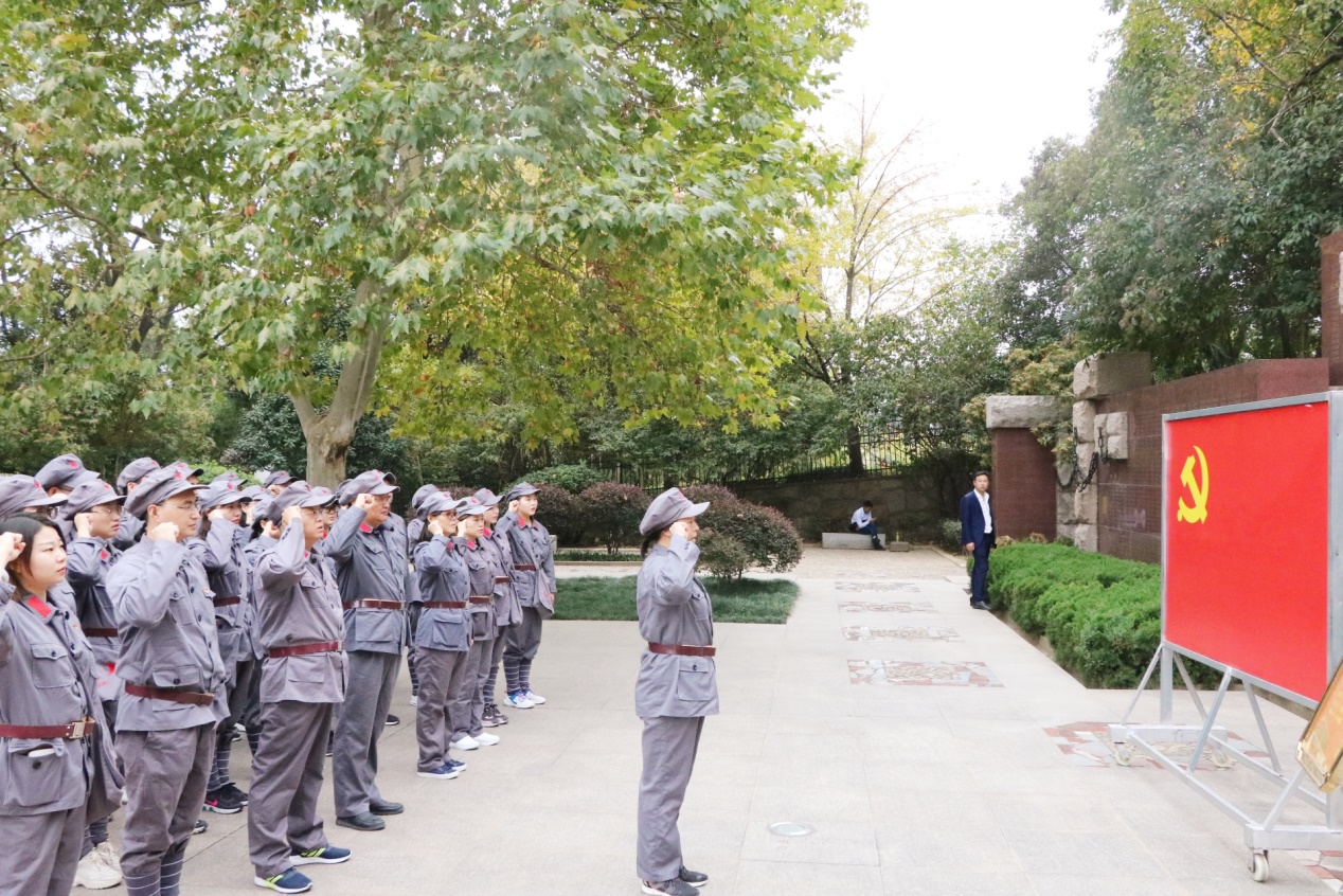 主题学习活动以参观历史旧址、博物馆,聆听讲解、现场教学、学唱红军歌谣、体验老区变化等多种形式开展,利用丰富的红色资源,把再现革命情景、追忆革命历史、体验红色文化、考验自我品格、熔炼团队精神融合在一起。师生党员一行身着红军服,先后来到鄂豫皖苏区首府烈士陵园、“志仁小道”、许世友将军故里、鄂豫皖苏区首府革命博物馆、列宁小学旧址、“红田”惨案旧址,每到一处,党员干部们都认真听取讲解,实地参观了历史图片、资料、抗战文物等。