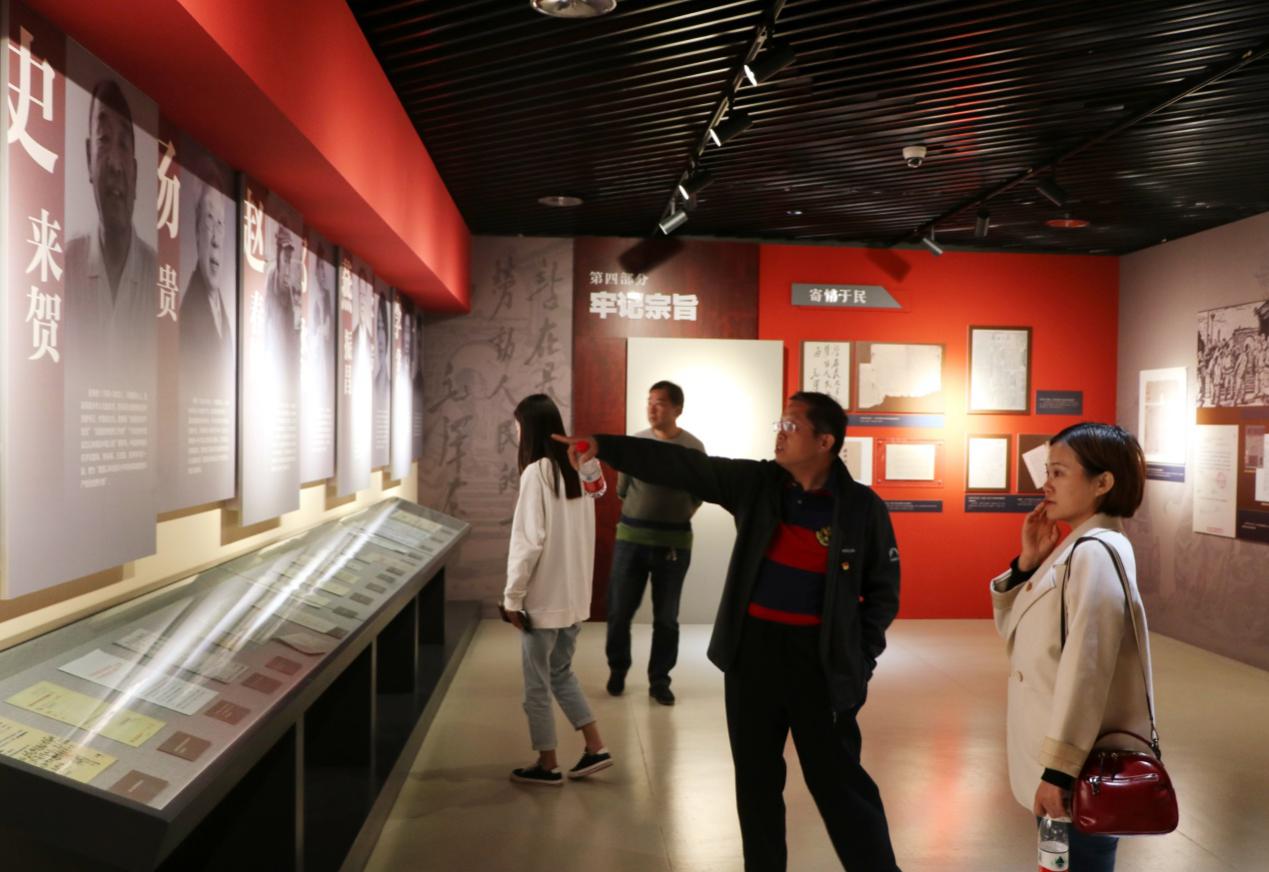 进入展馆,首先来到“不忘初心、牢记使命”主题命名的档案文献展。在展厅内,从《共产党宣言》手稿到中共一大会址复原场景,从油画《文家市》到吉鸿昌的血衣片……一张张内容详实的图片,一个个鲜活的历史人物,一个个耳熟能详党史故事,无不诠释着共产党人的初心和使命。最后,大家来到鲜红的中国共产党党旗下,在Beat365官方网站党总支书记孙勇的带领下,Beat365官方网站党总支全体党员教师举起右手,重温入党誓词。
