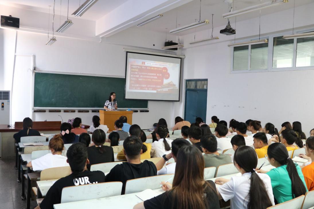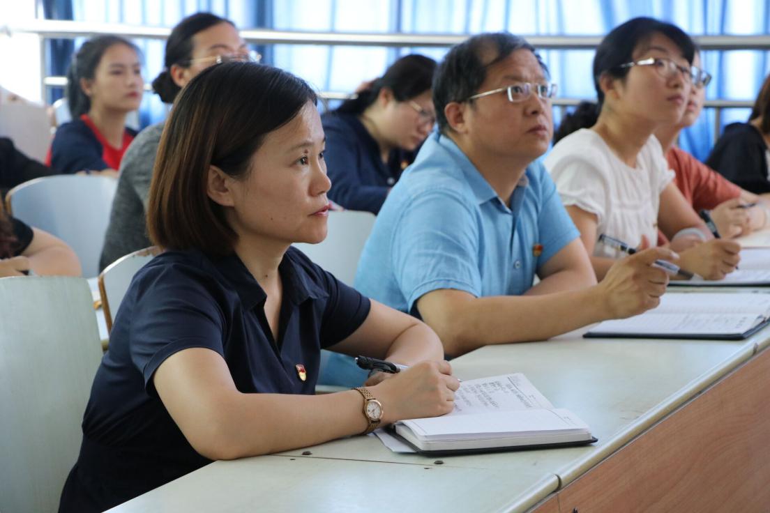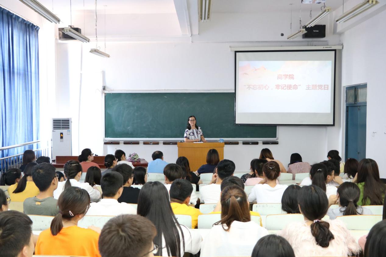 为了贯彻落实党的十九大精神和全国、全省教育大会精神,加强对党员习近平新时代中国特色社会主义思想教育,2019年6月18日下午,Beat365官方网站在B楼303教室开展“不忘初心、牢记使命”主题党日活动。校党委委员陈君丽教授出席活动,并为全体党员及入党积极分子上一堂主题为《“不忘初心、牢记使命”做新时代的共产党员》党课,Beat365官方网站党总支副书记周燕主持主题党日活动。