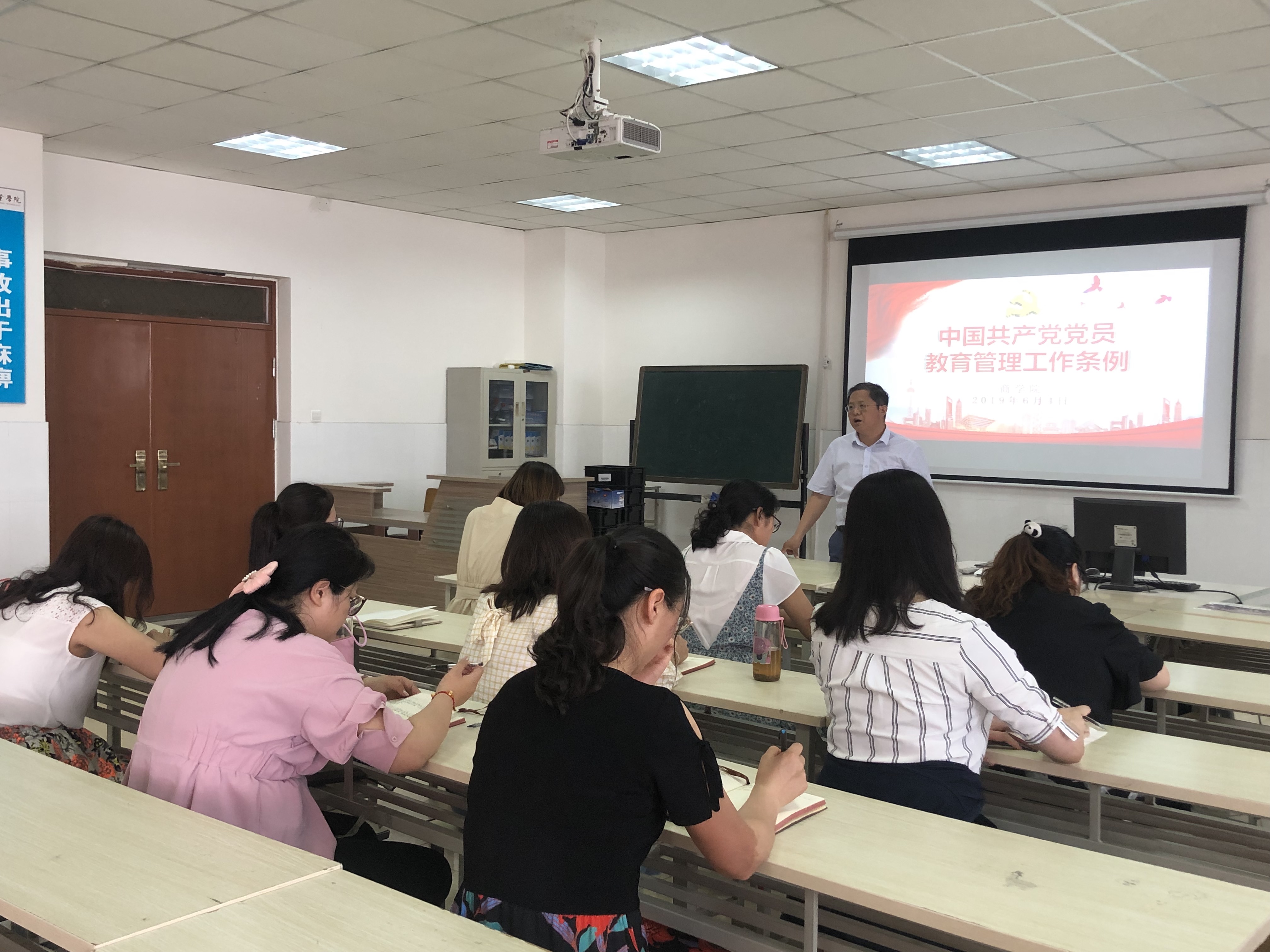 2019年6月4日下午,Beat365官方网站在实训室E609教室组织党员同志学习《中国共产党党员教育管理工作条例》。Beat365官方网站党总支书记、院长孙勇领学并主持学习会议。