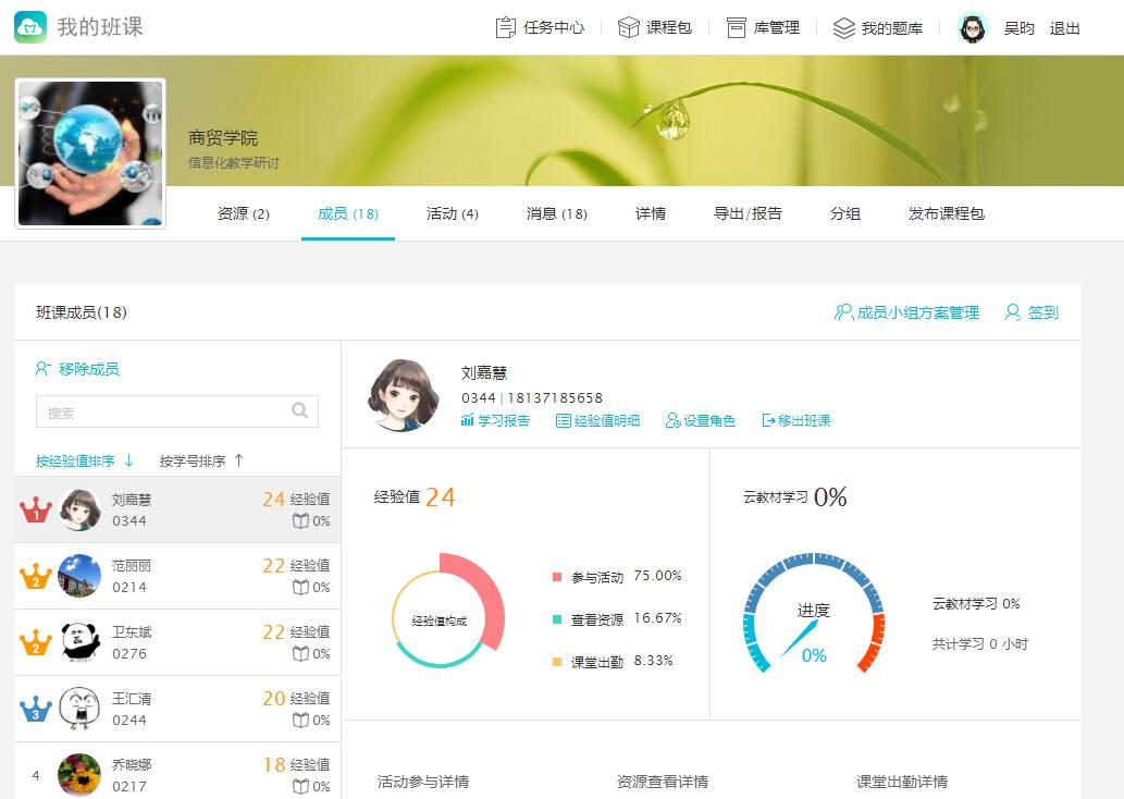 面对着日新月异的科技发展,如何给新时代的大学生上好每一堂课是每位老师都在思考的问题。2018年9月26日,吴昀老师利用晚辅导的时间给我们上了一堂互动性极强的蓝墨云班课,与大家分享了自己的教课教学感受。