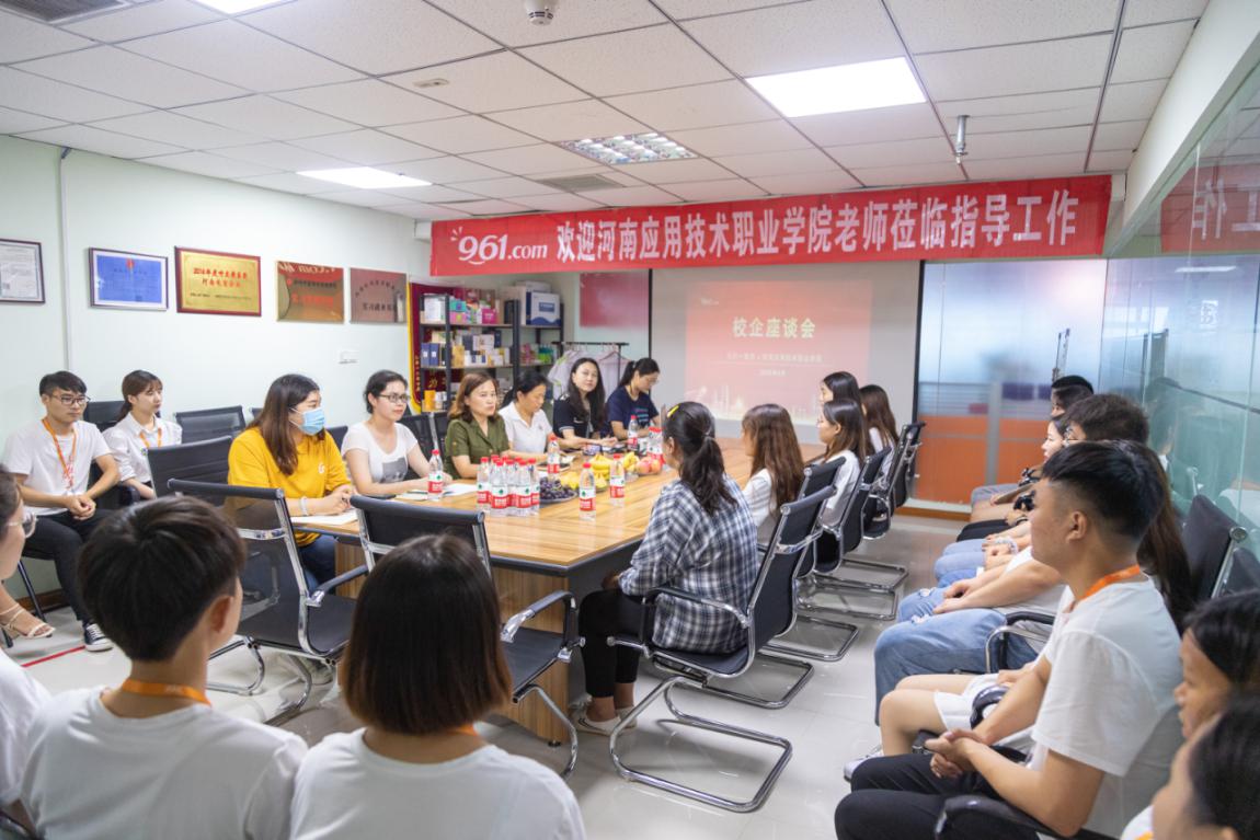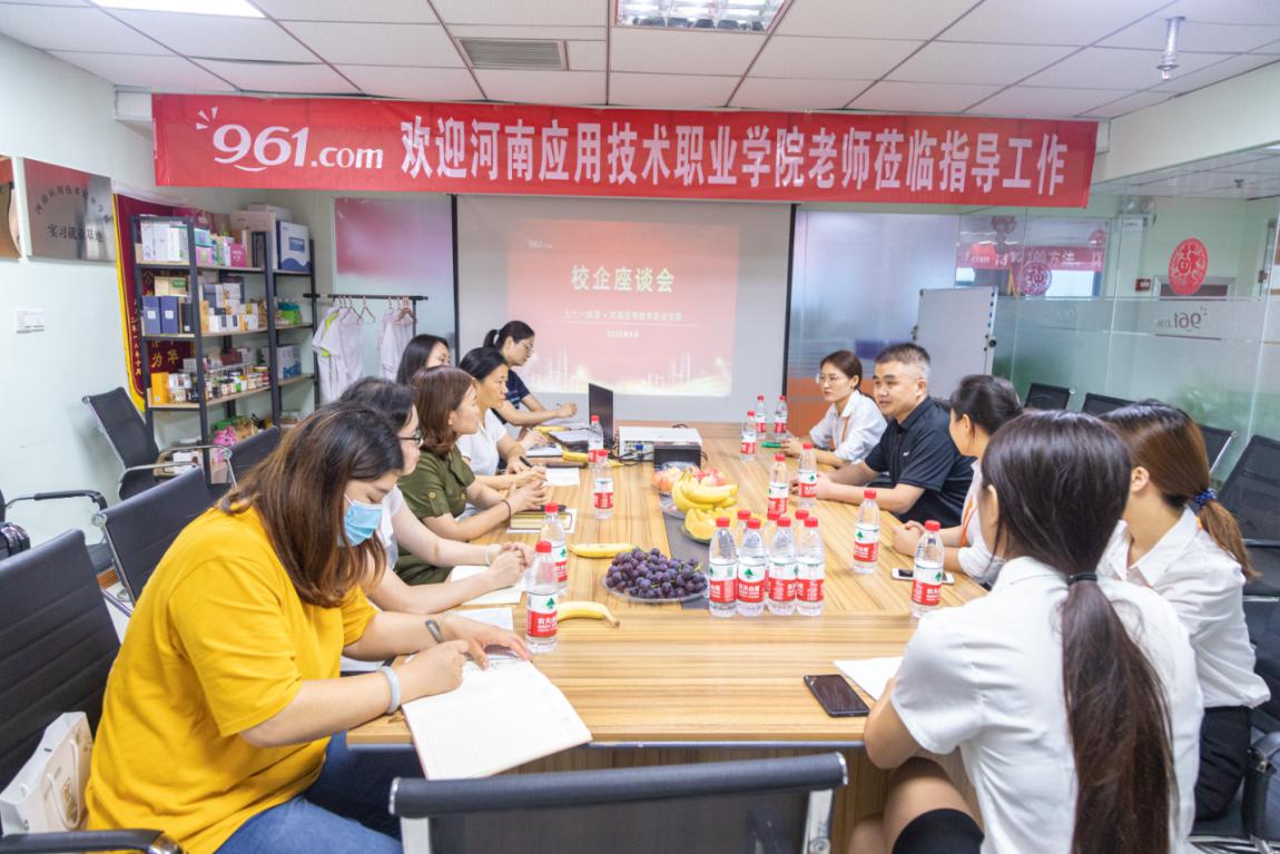 为加强与企业的沟通联系,获悉企业对人才的需求和质量要求,加强学生实习期间的思想教育,更好跟踪调查学生的实习就业情况,2020年8月6日,Beat365官方网站周燕书记和思政教学部何秀霞主任,以及Beat365官方网站和思政部相关教师来到郑州九六一电子商务有限公司,调研及回访学生就业情况。