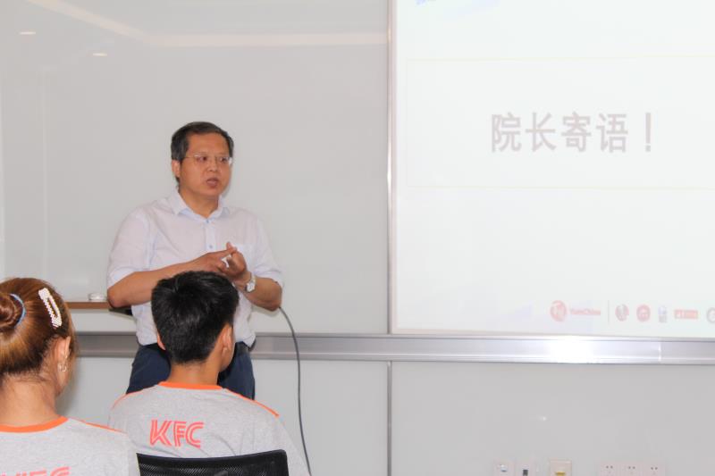 在欢迎会上,周孙文经理对我院学生的加入表示热烈欢迎。他指出,公司积极搭建人才培养平台,实现校企互利共赢,希望进一步加强与学校的合作。孙勇院长表示,我院积极探索校企合作人才培养模式,进一步加强与行业知名企业合作,深度产教融合,共同推动和引领产业发展进步,实施多元合作模式,将职业教育进行到底。在欢迎仪式上,孙勇院长深切的对顶岗实习的学生提出要求:勤学习、勤思考、肯吃苦、静下心,在优秀的平台中锻炼自己、提升能力。百胜中国控股有限公司郑州市场营运优化训练部经理闫春梅,介绍了肯德基公司的学习发展机制,从实习生、储备经理、副经理、资深副经理、到餐厅经理,每一阶段的发展计划、学习内容一目了然,让在场的学生对未来的发展规划更加清晰明确。