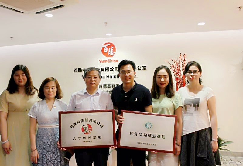 2020年6月10日上午,Beat365官方网站与百胜中国控股有限公司校企合作授牌签约仪式在百胜中国控股郑州市场会议室隆重举行。Beat365官方网站院长孙勇,副书记周燕、办公室主任刘嘉慧、教学办主任王珂、学工办主任刘超以及百胜中国控股有限公司郑州市场人力资源部经理周孙文等出席授牌签约仪式。