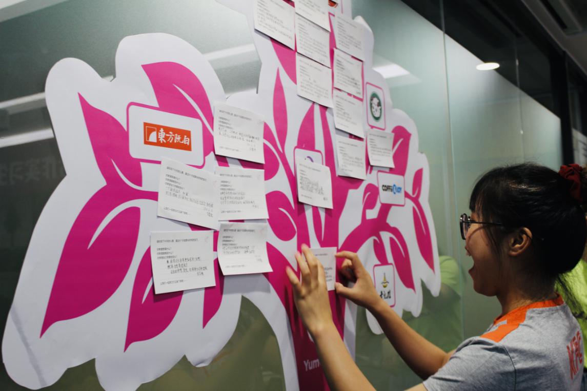 在欢迎会上,肯德基工作人员还为我院实习学生进行了员工授牌仪式,表示在带上授牌的那一刻大家就是肯德基大家庭中的一员。学生们写下对未来的愿景,并贴在公司的愿景树上,时刻激励自己朝着目标、向着未来,努力拼搏!