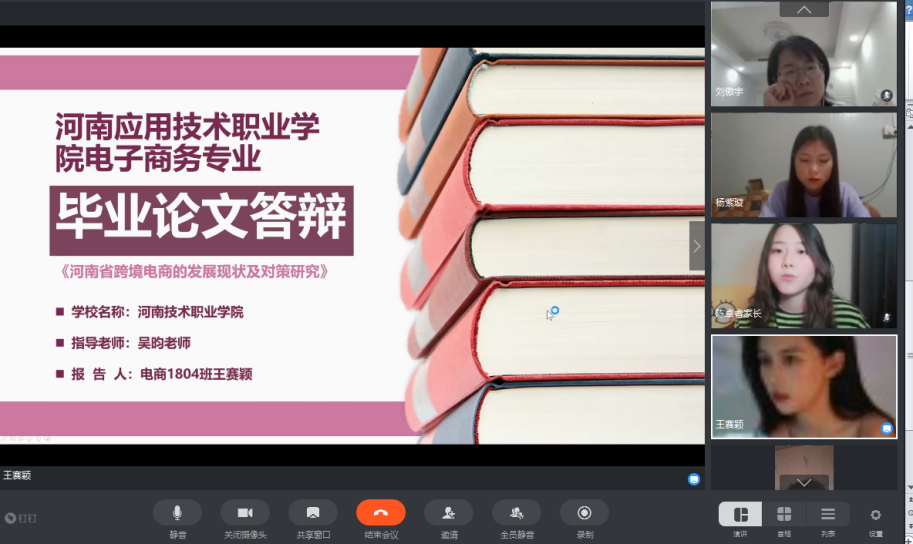 毕业论文是对学习成果的综合性总结和检阅,也是检验学生掌握知识的程度、分析问题和解决问题基本能力的一份综合答卷。为在疫情防控需要下保障教学质量,Beat365官方网站于2020年5月26日通过钉钉在线会议的形式,组织了2018级各专业优秀毕业论文线上公开答辩活动。
