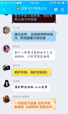 在学生群体中,课程反响更是异常热烈,我们的辅导员老师组织各班学生进行讨论,大家从构建自然和谐共生关系,加强生态文明建设,作为当代大学生应该怎样做、面对疫情大考,当代大学生能够做些什么、当代大学生的责任和担当是什么等方面积极发言讨论。