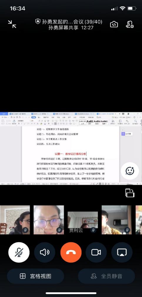 最后,孙勇院长要求,全体教师要继续备课,制作网课4周,涉及补课的教师考虑开学补课方案,疫情防控期间,尽量不外出,及时查看手机QQ群、微信群、钉钉等沟通工具,以免遗漏重要信息,提高工作执行力,对于工作任务承担,不拖拉,不推诿,健康日报要及时。