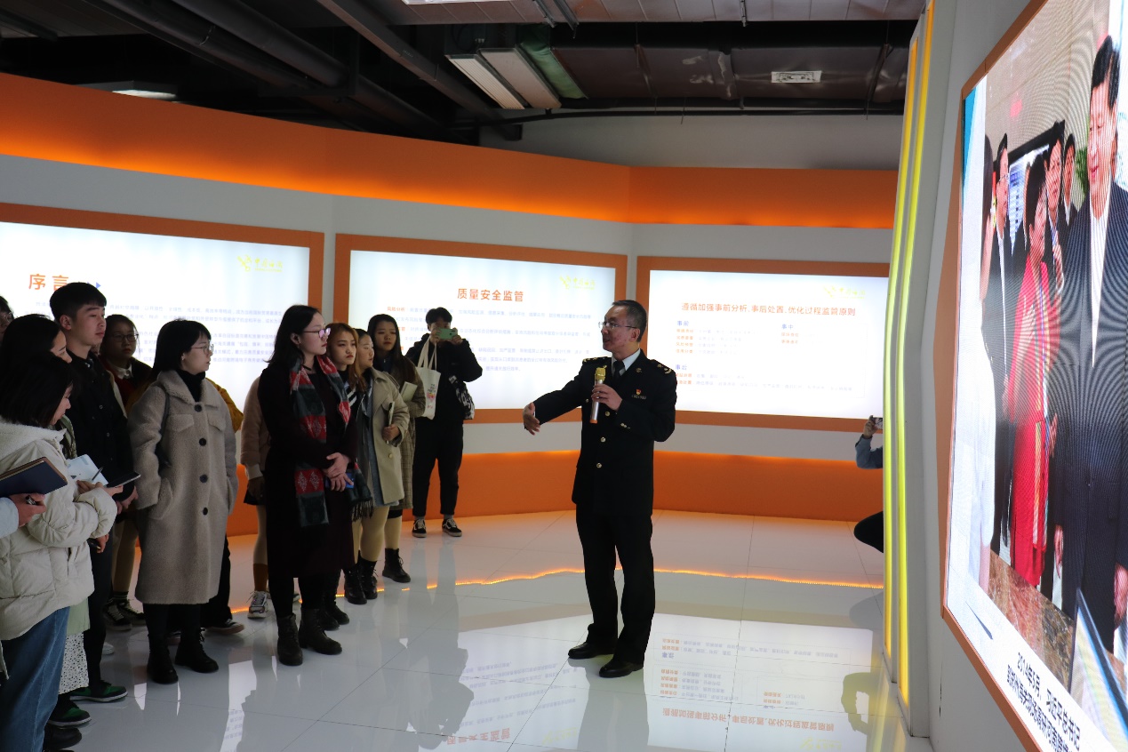 在保税中心,郑州新区海关兰磊关长热情接待Beat365官方网站师生,并全程带领老师和同学们进行参观学习,为大家讲解河南跨境电商近些年的发展历程及取得的辉煌成就。