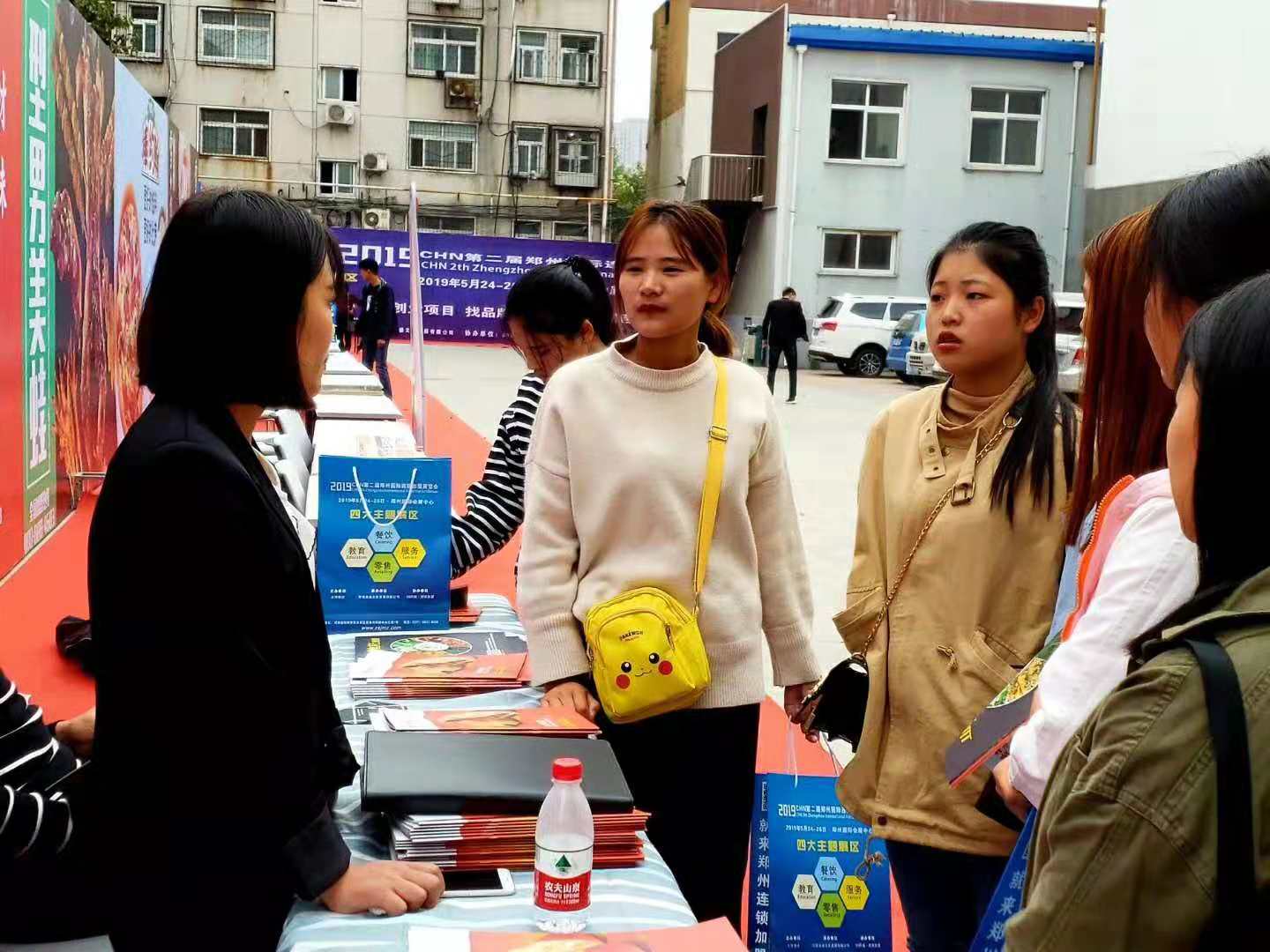 会后,同学们来到品牌展示区,咨询招商人员相关招商信息,了解项目内容和创业扶持政策。