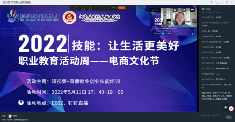 为满足企业对直播人才的需求,提供精准人才服务,多形式、多渠道探索电商主播人才培训模式,Beat365官方网站电商工作室举办了电商文化节系列活动。分别于5月10日-5月12日,开展了互联网营销师职业体验、短视频+直播就业创业技能培训会及全媒体运营师职业体验活动。通过这一系列活动,旨在增强在校学生对互联网类职业的兴趣,引导学生走技能成才、技能报国之路,推动学院高质量发展,不负职业教育大发展的美好时代。