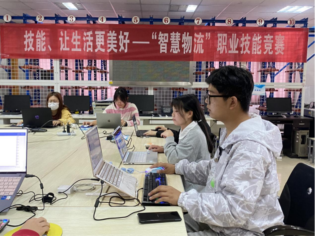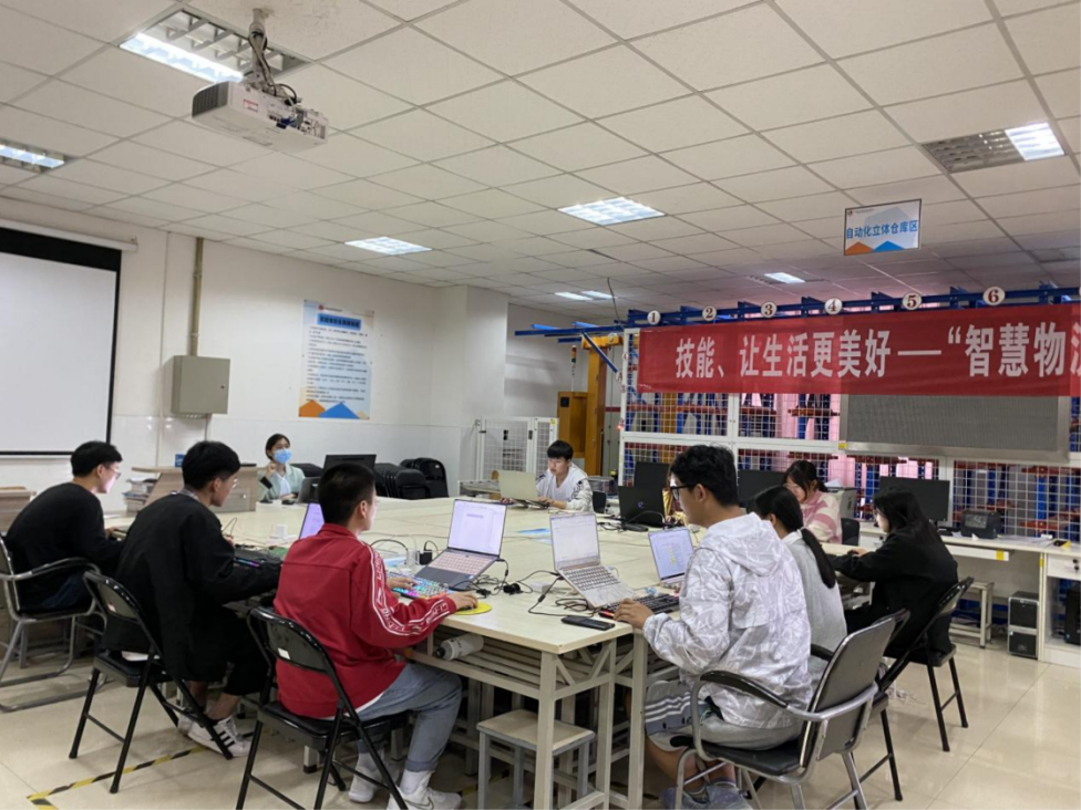 在该次比赛的赛程中,第一阶段为“智慧物流作业方案设计”环节,参赛队伍在仓储配送实训室进行电脑操作。在方案设计环节,各位参赛队员严格按照“智慧物流作业方案设计与实施”竞赛规程进行,方案设计过程共2个小时,比赛紧张有序,现场氛围浓厚。