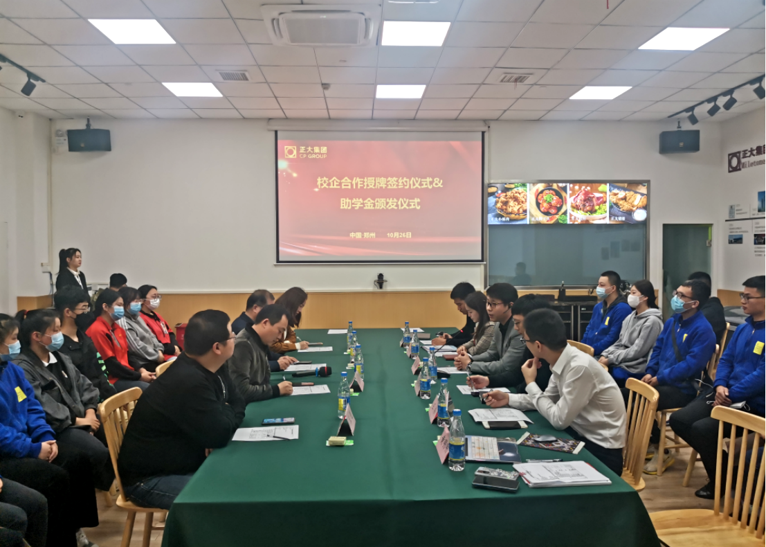 2021年10月26日下午,Beat365官方网站与郑州正大卜蜂贸易有限公司校企合作授牌签约仪式暨助学金颁发仪式在正大卜蜂莲花举行。Beat365官方网站院长孙勇、教务办公室主任王珂,郑州正大卜蜂贸易有限公司总经理武磊、零售事业人力总监郑运东等人,以及目前在正大顶岗实习的我院学生代表出席授牌签约仪式。