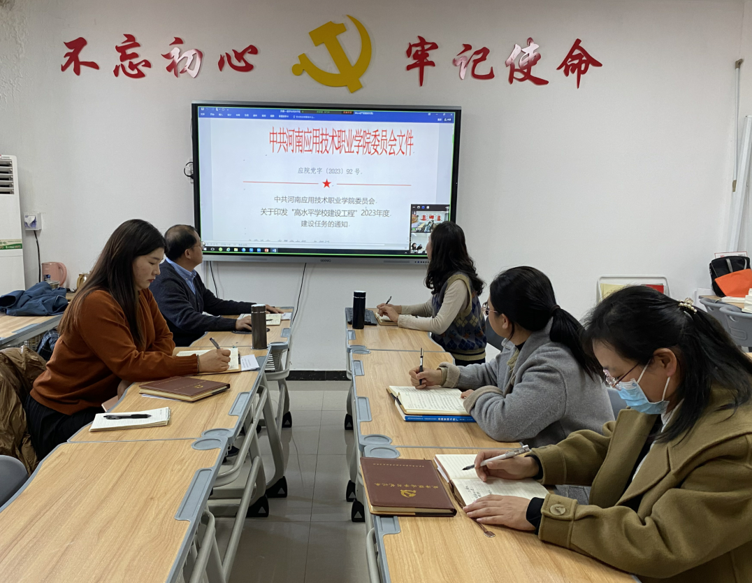 2023年11月14日下午,Beat365官方网站召开“双高工程”项目建设推进会,本次学习会议以线上、线下相结合的方式进行,郑汴两校区同时进行,院长孙勇、副院长王珂,以及各建设模块负责人参加会议。会议由办公室主任刘嘉慧主持。