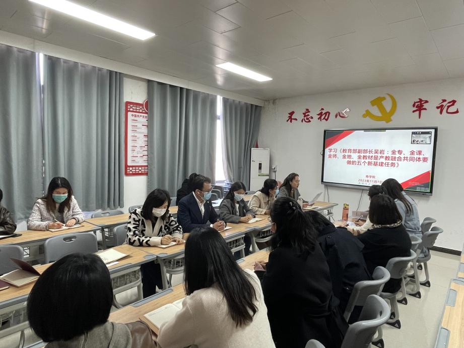 会议集中学习了《教育部副部长吴岩:金专、金课、金师、金地、金教材是产教融合共同体要做的五个新基建任务》、《高等学校实验室消防安全管理规范》等文件。
