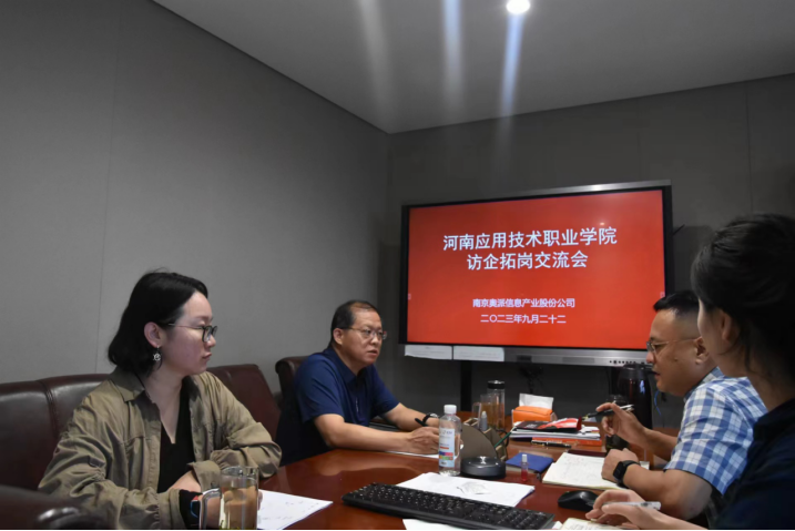 在访问中,孙勇和奥派公司董事长徐林海等人进行了深入的交流和讨论。双方就如何加强专业建设,提高人才培养质量等议题进行了探讨。孙勇院长分享了Beat365官方网站专业建设理念和人才培养思路,并表示,Beat365官方网站将与南京奥派积极合作,共同开展专业建设、实践教学项目建设、优质资源建设,不断提升学生的专业技术能力。